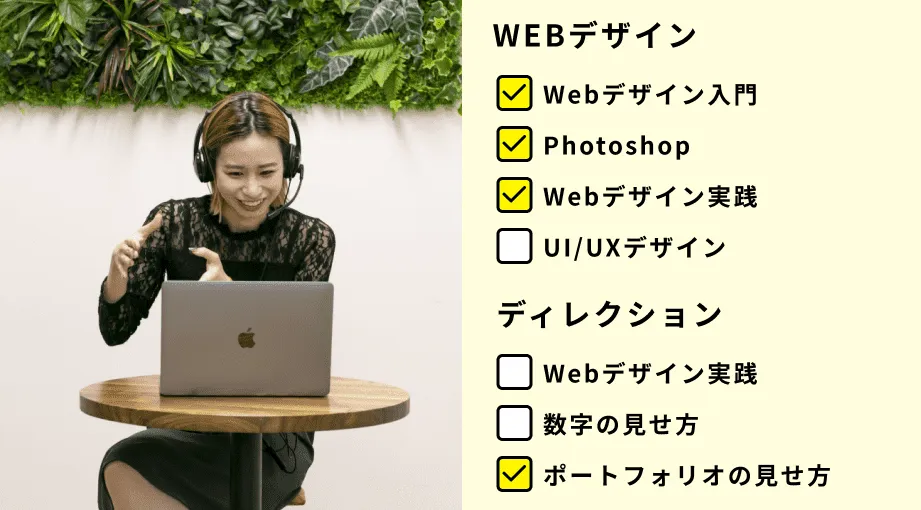 ツールの使い方や実際の制作物を作るだけでなく、マーケティング視点からで考えるデザインを学べたので、自分が望んでいたスキルが獲得できたと思います。